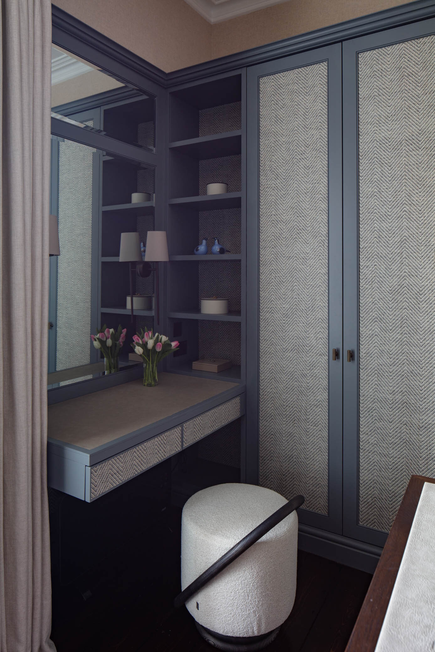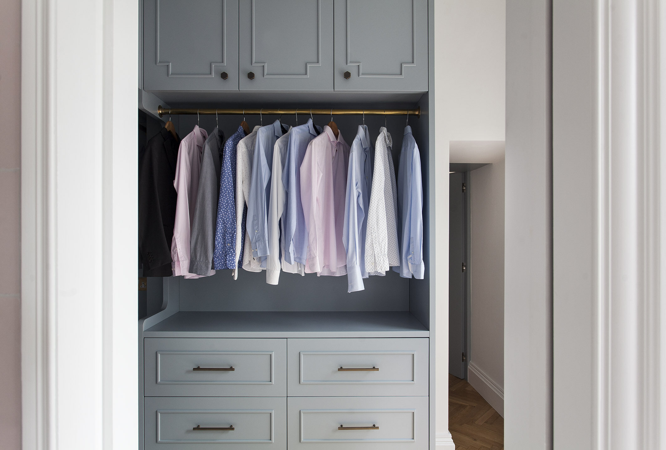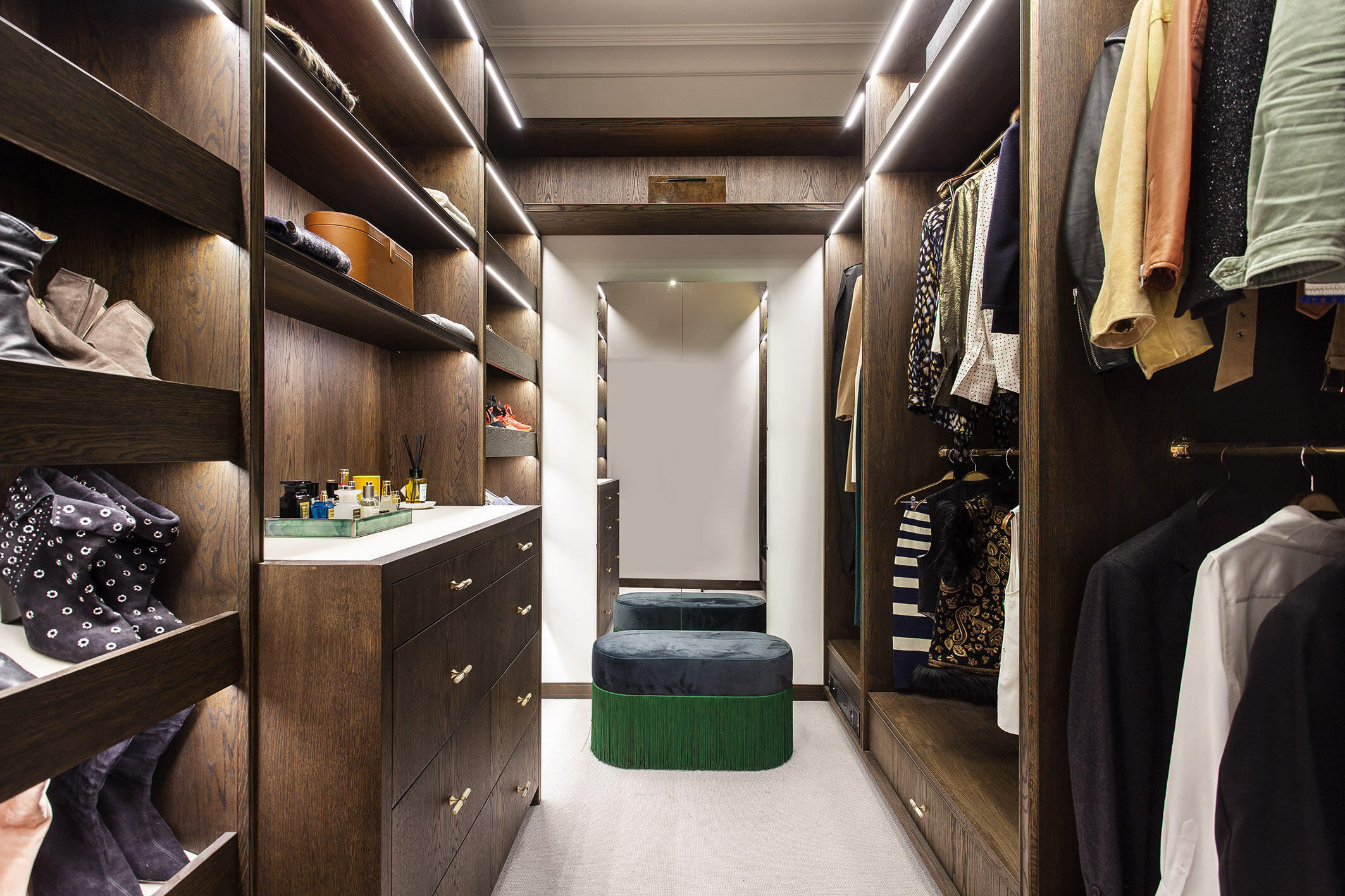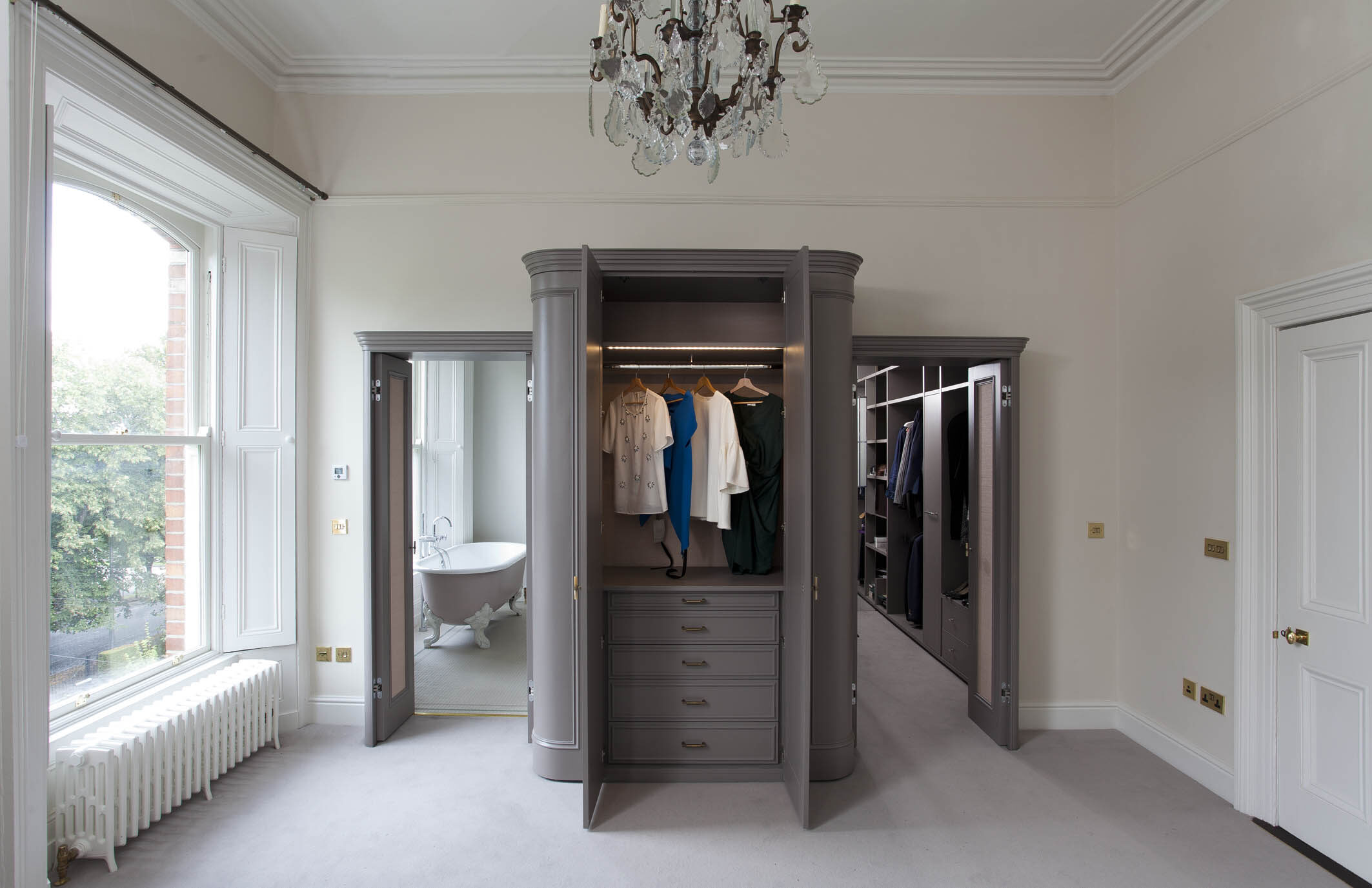 Created the ultimate hotel suite sanctuary with a beautifully designed and crafted Abington dressing room. Form and function go and in hand as the design evolves, ensuring a stylish high quality finish, while providing a custom made storage space for every item in your wardrobe. From shoe collections, to designer handbags, makeup to jewellery, everything is catered for with an impeccable attention to detail.