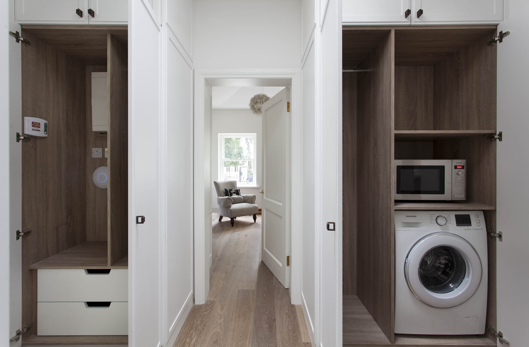 Enhance the practical areas of any home with a custom designed and crafted Abington bootroom or laundry room. Meticulously created to the same exacting standard as our other custom crafted furniture, these bespoke rooms of furniture provide superb flexible storage and a highly practical work space for doing the families laundry, storing coats, boots and all the other every day essentials that can clutter up other rooms in the home.